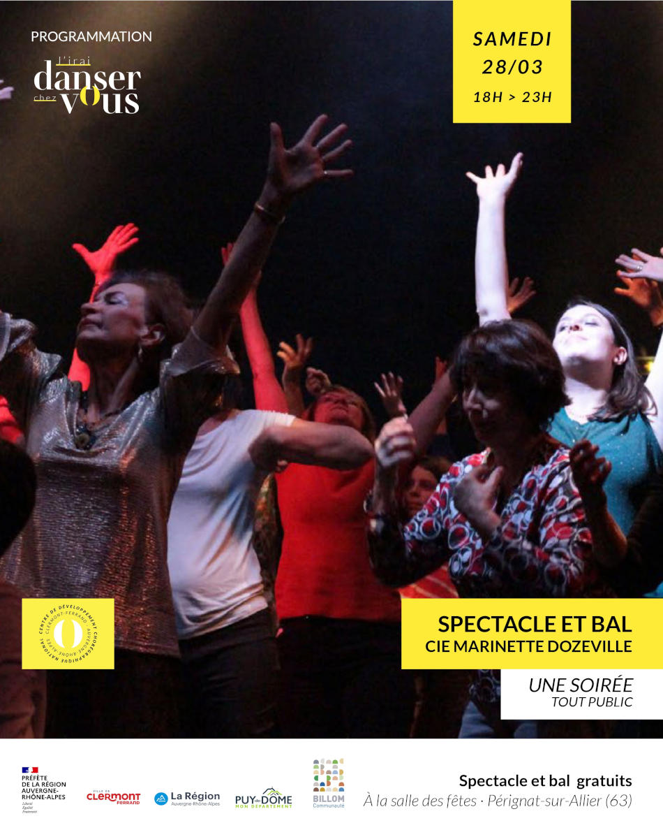 Dans le cadre des projets sur LA DANSE ET LE BAL, le service culture de Billom Communauté et la commune de Pérignat-sur-Allier s’associent pour accueillir l’équipe de Boom’Structur-CDCN et la compagnie Marinette Dozeville, fin mars et début avril, pour le projet "J’irai danser chez vous".