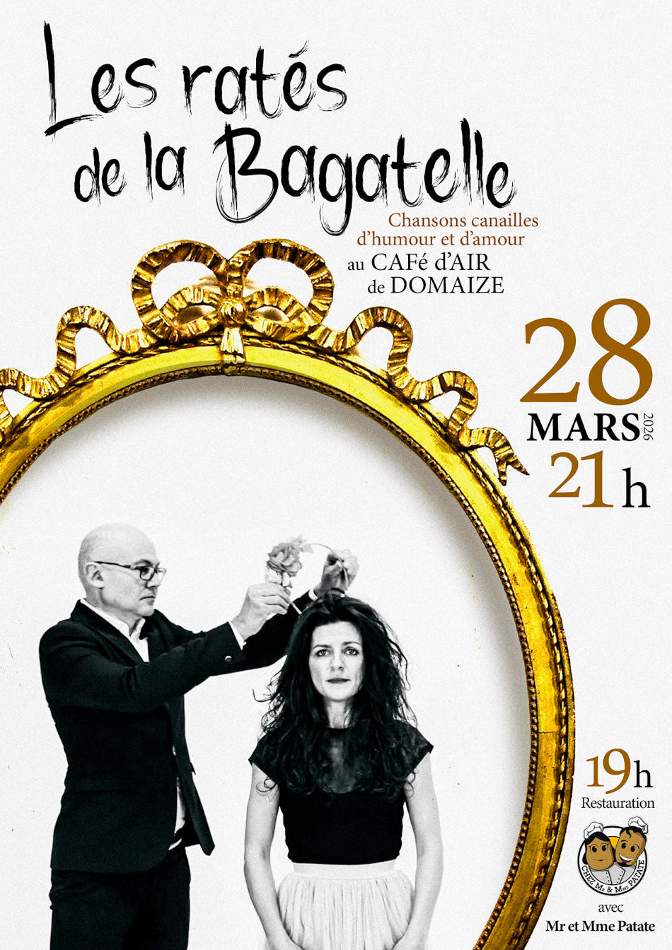 Concert le 28 mars 2026, à 21 h, avec restauration à partir de 19 h : venez rire avec "Les Ratés de la Bagatelle" ! Chansons canailles, d’humour et d’amour.