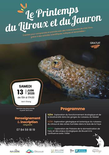 Le service rivière de Billom Communauté et Entre Dore et Allier vous invite à découvrir les cours d’eau du Litroux et du Jauron à travers 3 sorties thématiques.