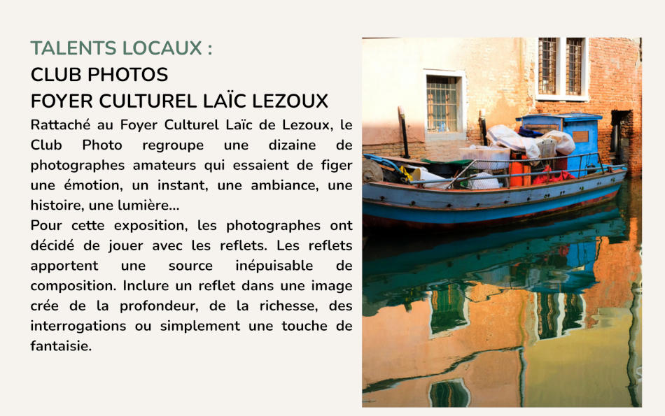 Du 14 au 16 novembre 2025, la salle du Lido de Lezoux sera l’écrin de l’exposition Lezoom sur l’art, qui fêtera sa quinzième année. 23 artistes seront présents avec leurs messages à la fois intimes et universels. Des ateliers seront proposés aux visiteurs pour créer du lien entre les artistes et le public.