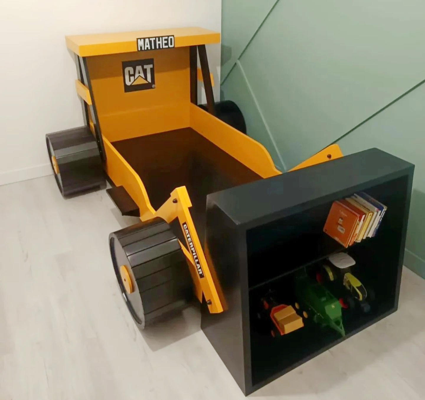 Sans oublier des créations originales, comme un lit tractopelle unique, entièrement fabriqué, peint et fini avec passion.