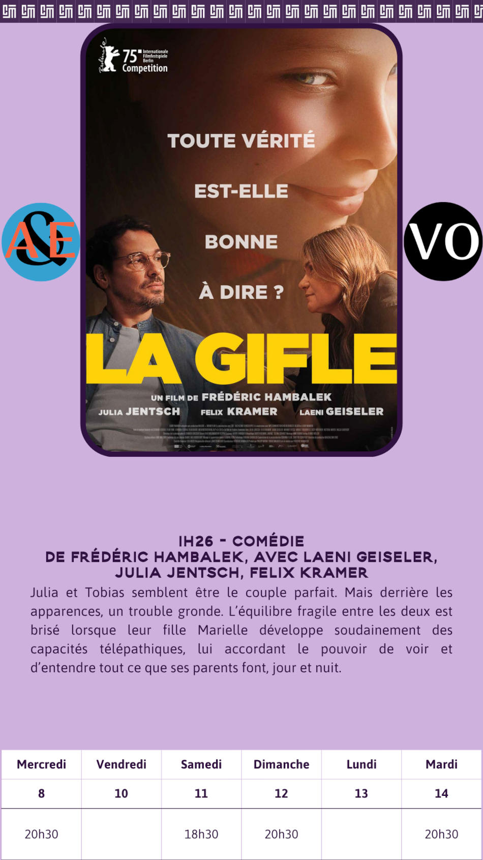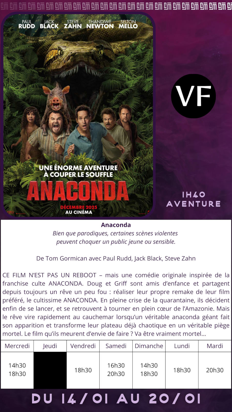 Notre cinéma de 3 salles propose une programmation variée : des blockbusters américains, aux comédies françaises en passant par des films art et essai, plus exigeants et les films pour les plus petits.