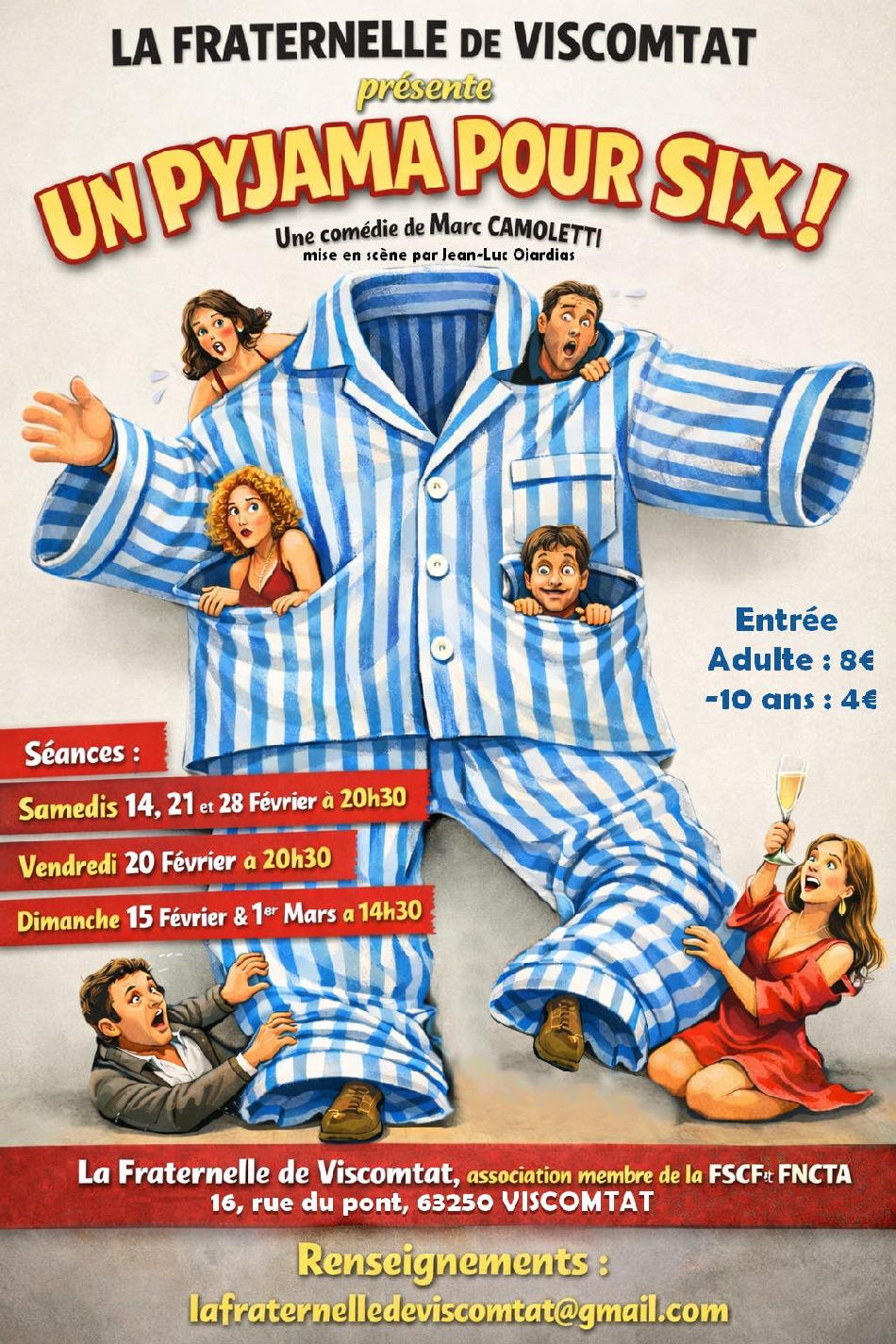 La Fraternelle de Viscomtat vous présente la pièce « un pyjama pour six », une comédie burlesque où les invitations ne sont pas forcément celles attendues.