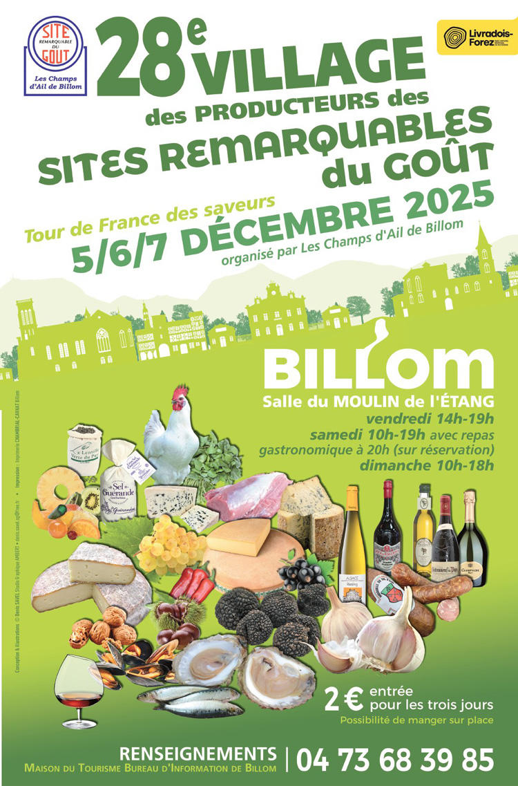 28ème Village des producteurs des Sites remarquables du goût, du 5 au 7 décembre 2025, Espace du Moulin de l’Étang à Billom.