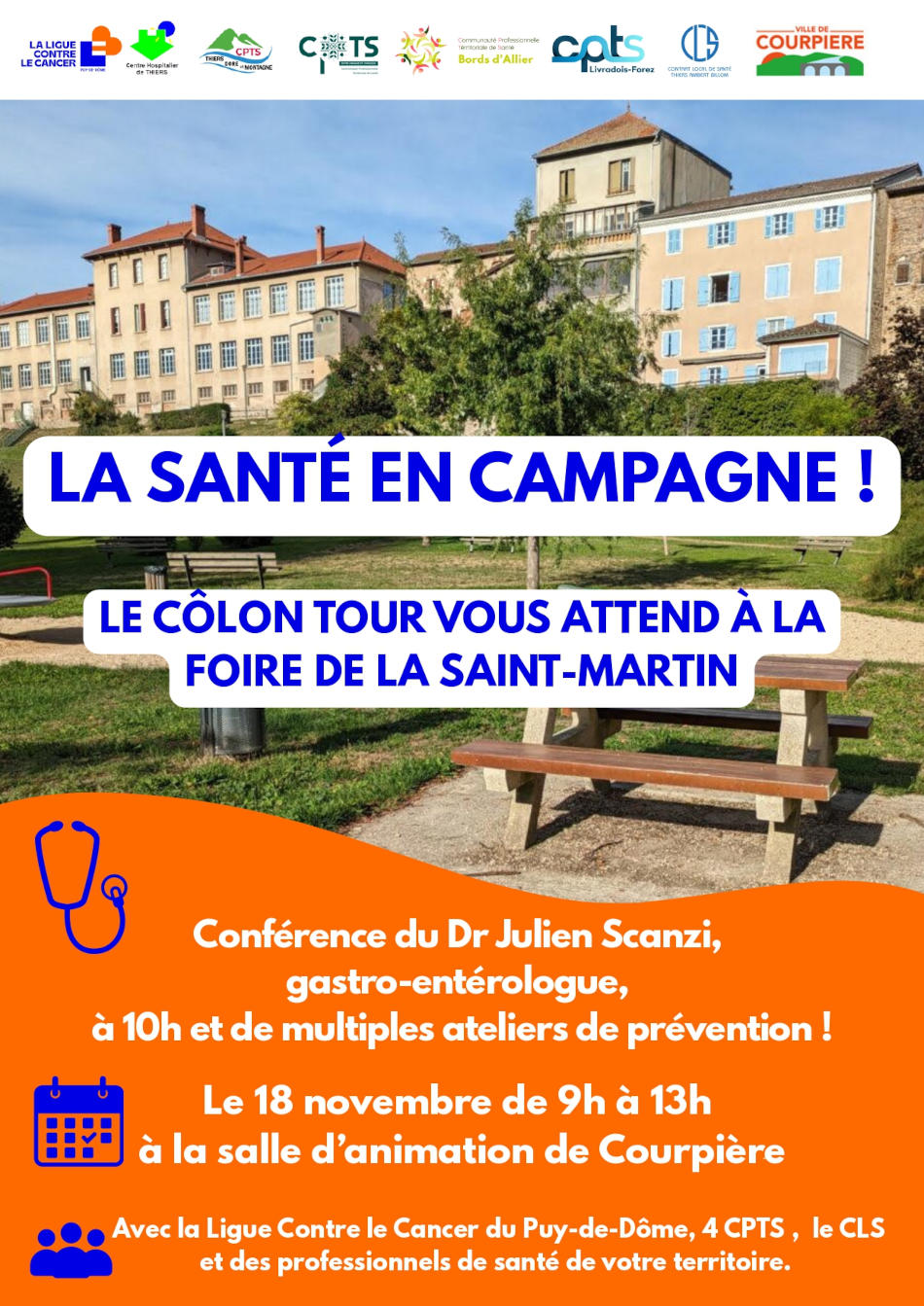 À la salle d’animation, présence du pôle Contrat Local de Santé sur la prévention du cancer colorectal avec la présence du Docteur Julien SCANZI, gastro-entérologue à Thiers.