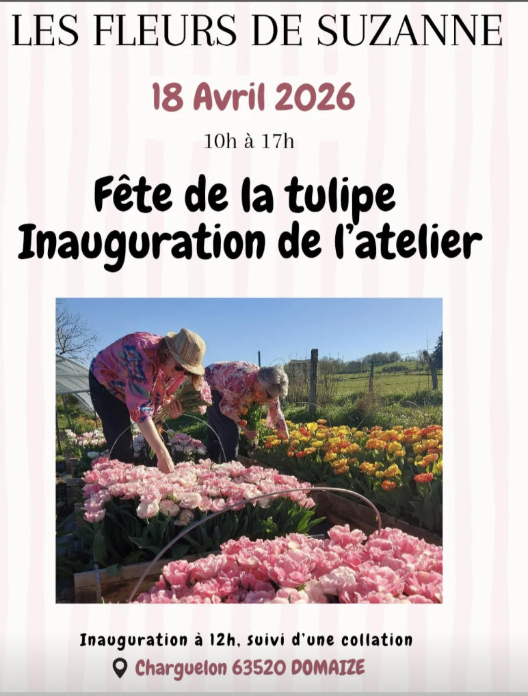 Samedi 18 avril 2026, Fête de la tulipe de 10 h à 17 h, et inauguration de l’atelier floral à midi, suivie d’une collation