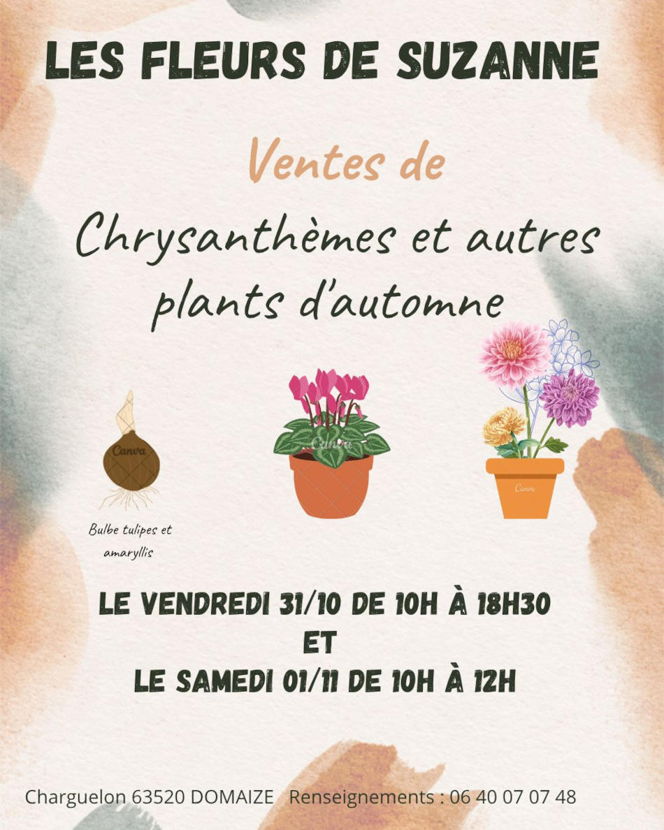 Ventes de chrysanthèmes et autres plants en pots à la ferme.