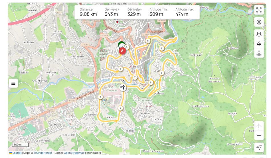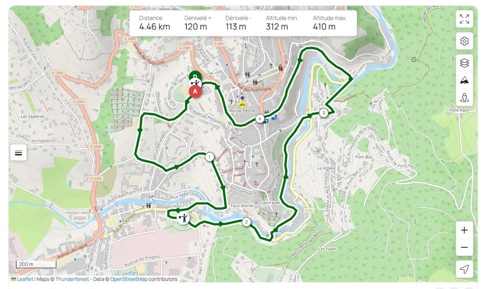 Découvrez ce parcours de randonnée de 4,5 km à proximité de Thiers. Il présente une ascension cumulée de plus de 120m. Prévoyez environ 1 heure et 25 minutes pour réaliser ce parcours.