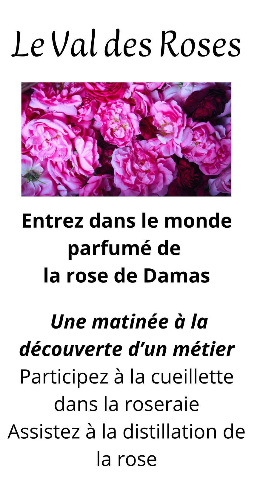 Entrez au cœur de mon métier, en participant à la distillation de la rose et la visite des cultures. Découvrez les propriétés de la reine des fleurs. Les visites sont sur rendez-vous, du 15 juin au 10 juillet 2025, le matin à 9 h. Tarif : 7 € / personne