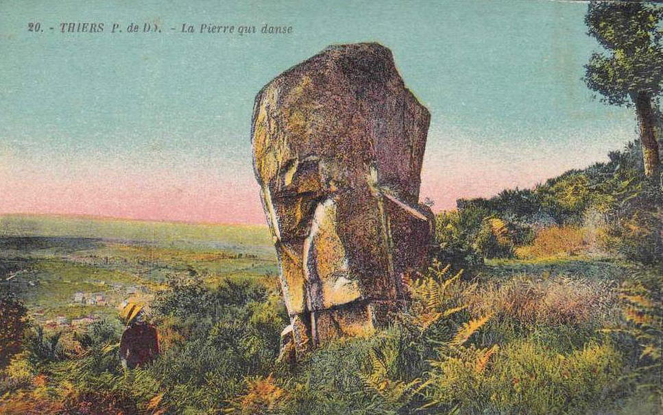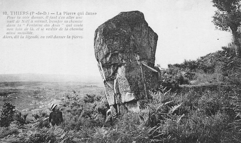 Si nous suivons la route, cependant, le pays change peu à peu d’aspect ; aux champs cultivés succèdent les fougères et aux fougères la roche aride, montrant son dos dénudé…A mi-côte peu à peu, un endroit où la terre est devenue la propriété exclusive des fougères, une roche semble perdue au milieu du vert sombre du paysage. C’est la Pierre qui danse. Le nom de ce rocher, à lui seul, présente toute une légende, et il n’est pas un étranger qui, l’entendant prononcer pour la première fois, ne demande à la connaître.
