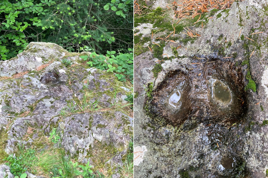 À Olmet, un jour, selon la légende, un paysan qui s’y hasardait seul avec un bœuf en fit les frais. Pris d’une peur instinctive et incontrôlable, l’animal refusa d’avancer si bien qu’un de ses sabots s’imprima dans le roc où il est resté encore bien visible (cf photo ci-dessous).