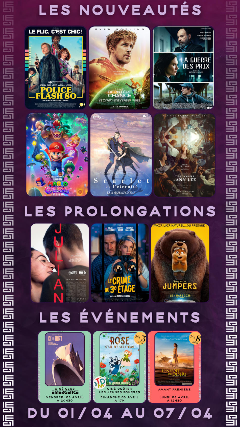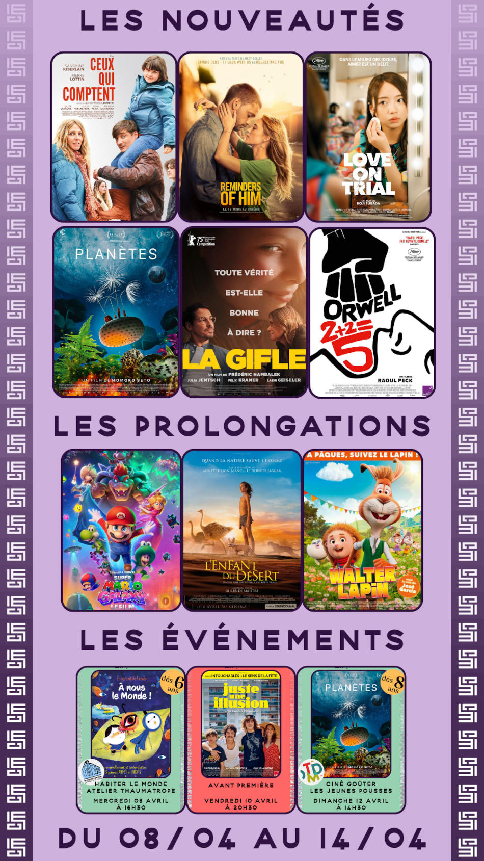 Notre cinéma de 3 salles propose une programmation variée : des blockbusters américains, aux comédies françaises en passant par des films art et essai, plus exigeants et les films pour les plus petits.