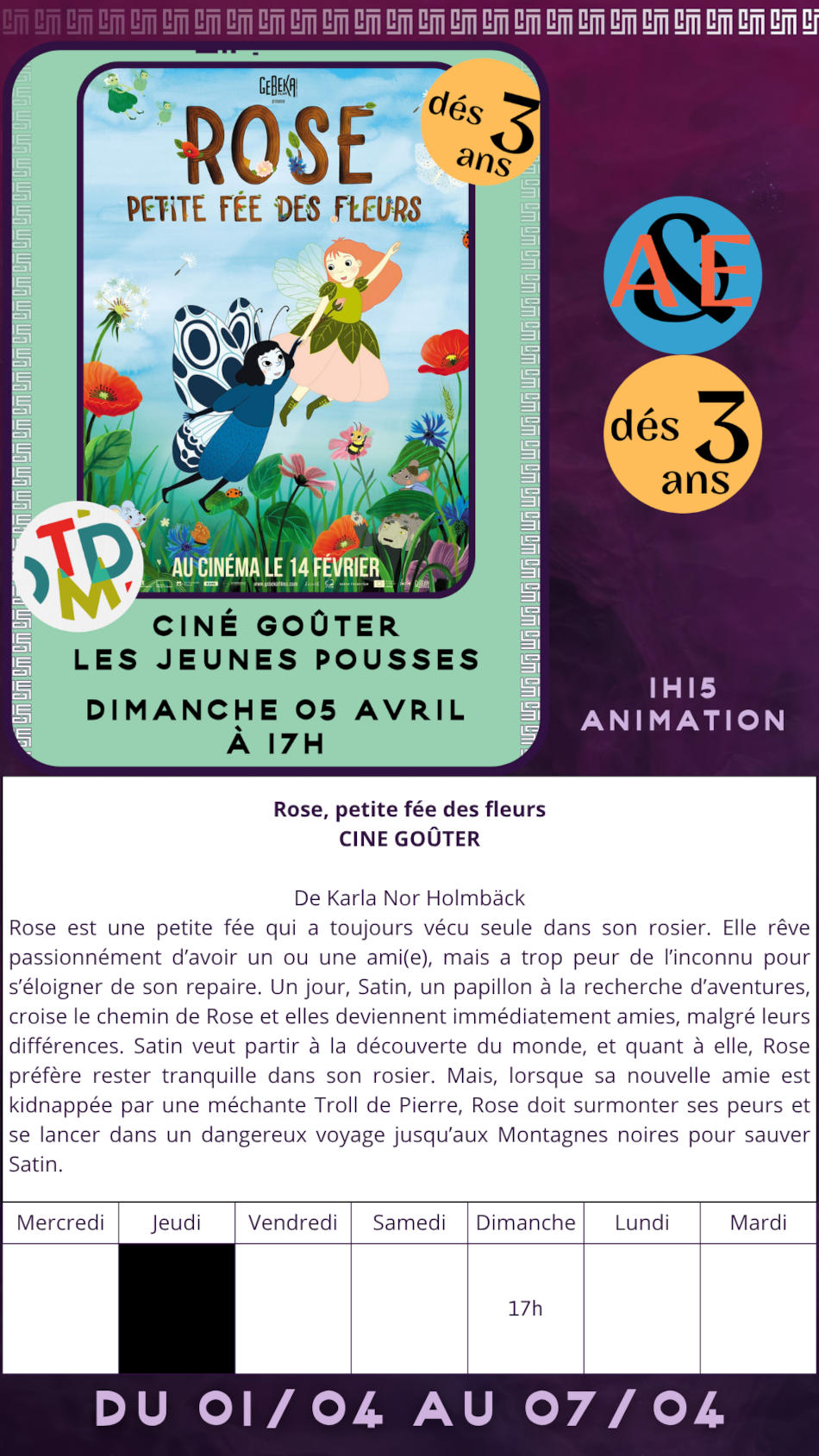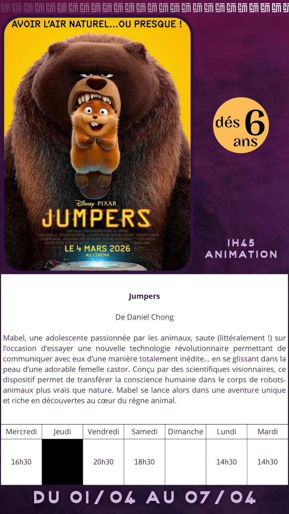 Ouvert 6 jours/7 et pendant les vacances scolaires 7j/7.