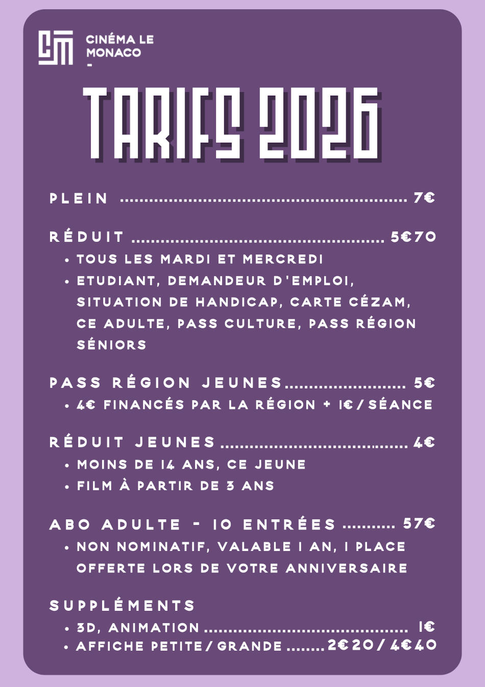 Tel : 04 73 80 05 31 - accueil.lemonaco@thierscinema.fr
